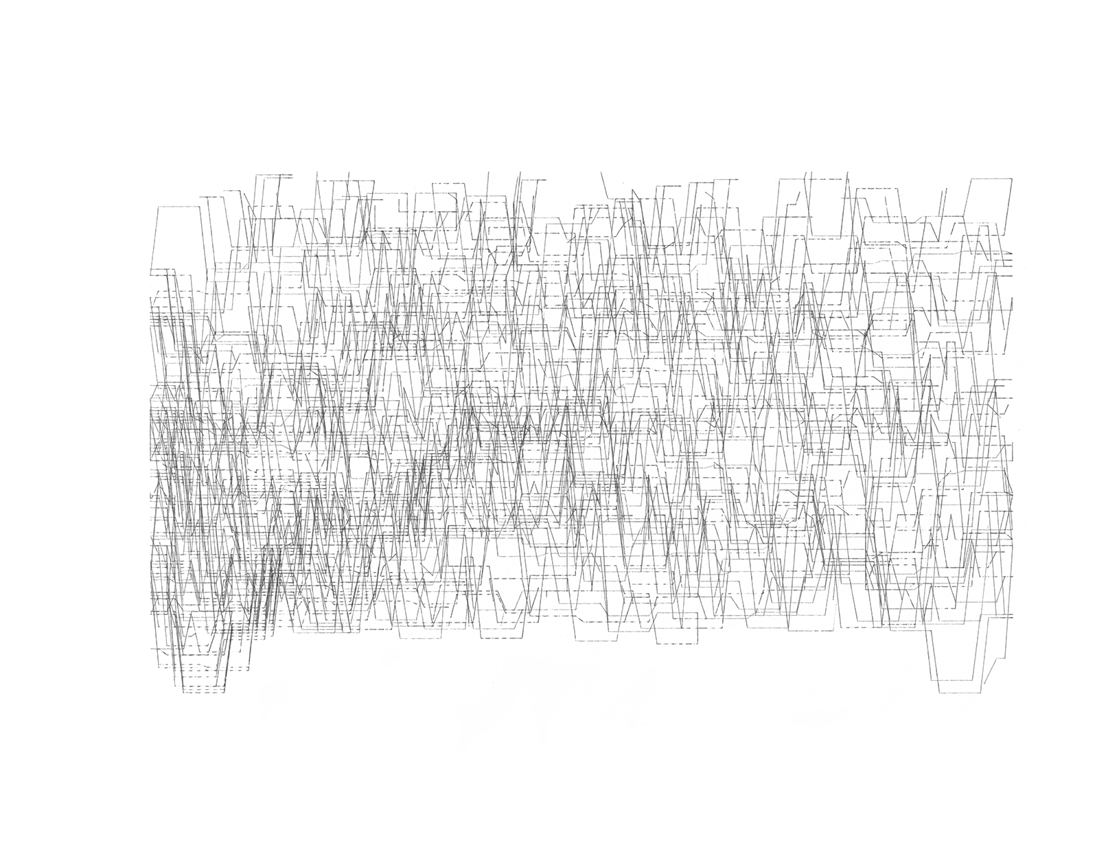 A physical drawing created by enemies from the Legend of Zelda for NES. Monsters from the game were hooked into an HP 7475A Pen Plotter. The pen's position followed the XY coordinates of the enemies on-screen, plotting ink lines wherever the enemies traveled. They created 12 unique drawings which are available for sale here. Drawings are 8.5 x 11, pen on acid-free cardstock, with scans displayed above. Funds (after broker fees) go to the game enemies.